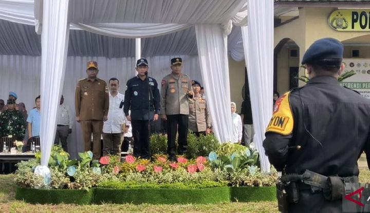 Gubernur Banten Andra Soni (kiri), Menteri Lingkungan Hidup Hanif Faisol, dan Kapolda Banten Irjen Pol Hengki dalam Apel Kesiapsiagaan Penanganan Kerawanan Bahaya Radiasi Cs-137 di Mapolsek Cikande, Kabupaten Serang, Banten, 13 Oktober 2025. Antara/Devi Nindy