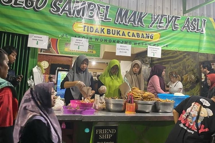 Sego Sambel Mak Yeye bisa dibilang sebagai salah satu kuliner legendaris di Surabaya. Lokasinya strategis, tidak jauh dari Stasiun Wonokromo dan DTC, tepatnya di Jalan Jagir Wonokromo Wetan. Menunya sederhana, terdiri dari nasi hangat, lauk pilihan seperti ikan asap, ayam, tempe, tahu, atau telur dadar, dan tentu saja sambal super pedas yang menjadi bintang utama. Harganya juga terjangkau, mulai dari Rp11 ribuan hingga Rp20 ribuan, tergantung lauk pilihanmu. Warung ini buka mulai pukul 6 sore sampai 2 dini hari, cocok untuk kulineran malam.